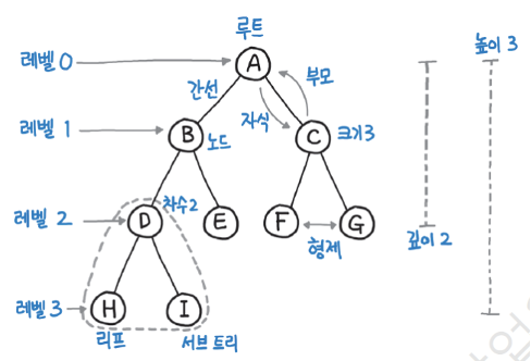 트리의 구성 및 용어들 :